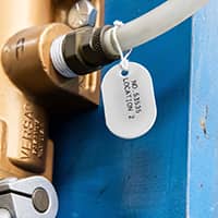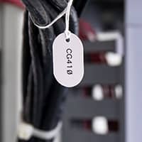 Tag a variety of assets with this tough polyethylene tag label material (B-145) that prints on both sides and folds to form an oval tag. Easily print anywhere with a Brady handheld label printer.